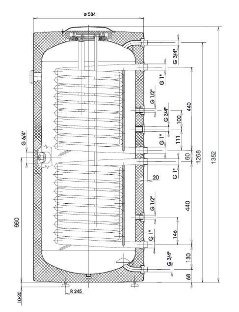 - Tároló felfűtési ideje felső/alsó hőcserélővel 10 C-ról 45 C-ra: 38/19 perc