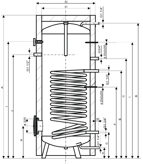 - Tároló és hőcserélő anyaga: zománcozott acél