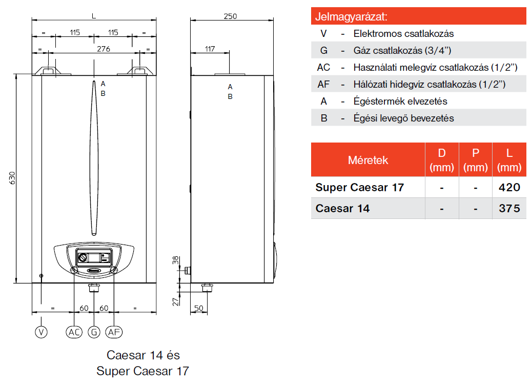 - 17 liter/perc melegvíz hozam (25 C fokos hőmérsékletkülönbség mellett)