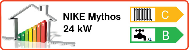 A NIKE Mythos 24 ErP fali gázkazán 24,0 kW teljesítménnyel képes fűtési és átfolyós rendszerben használati melegvizet előállítani. Kompakt méretének (mélysége csak 24 cm!) és új, elegáns megjelenésének köszönhetően szinte bárhová fölszerelhető. A NIKE Mythos 24 ErP kazán új, elektronikus modulációs panellel rendelkezik, digitális kezelőfelülettel. A készülék digitális távszabályozóval (AmicoV2) is együttműködik.