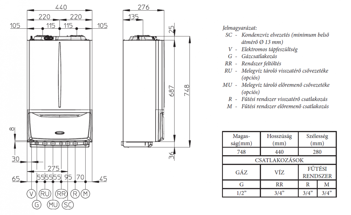 • 748 / 440 / 280 Méret (mag/szél/mély)